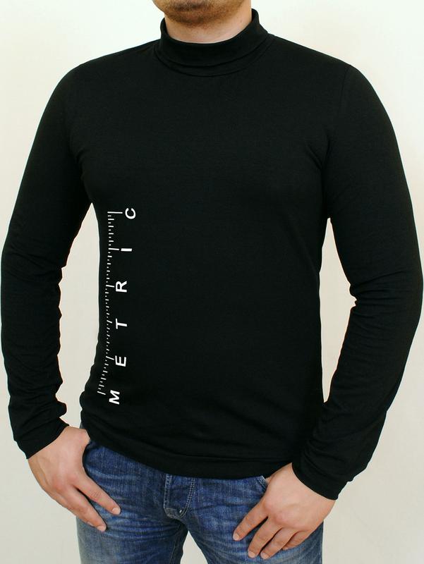 Трикотажный гольф из стрейч коттона. На передней полке вертикальный принт. Материал приятный к телу, тянется, но не растягивается. Снизу и на рукавах манжеты. Ткань производство - Турция. Замеры сделаны по изделию: M: объем груди 104 см., высота стойки 10 см., длина по спине 70 см., длина рукава от плеча 70 см., L: объем груди 108 см., высота стойки 10 см., длина по спине 70 см., длина рукава от плеча 70 см., XL: объем груди 112 см., высота стойки 10 см., длина по спине 72 см., длина рукава от плеча 71см., Состав ткани: 98% хлопок, 2% эластан