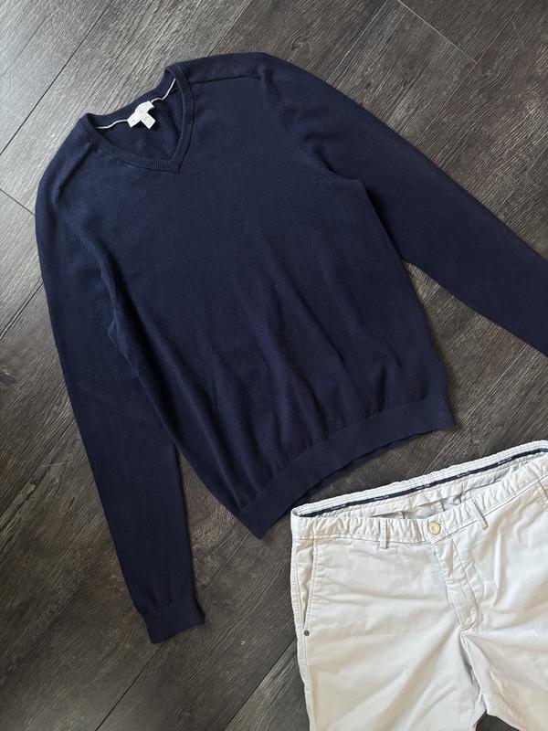 Оригінальна чоловіча кофта GAP темно-синього кольору в ідеальному стані. Дуже приємний на дотик бо у складі є кашемір. Розмір по бірці XS, але по факту буде на S Заміри: Довжина - 63 см Ширина під пахвами - 49 см Довжина рукава від горла - 82 см Матеріал: 95% бавовна, 5% кашемір