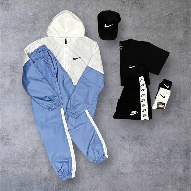 🔥 Nike Demi-Season Collection 🧥 Деталі товарів: 1. Костюм (вітровка + штани) Функціональний костюм з плащівки — поєднання зручності та сучасного стилю. Модель виготовлена з плащівки, яка не пропускає вітер і захищає від легкого дощу. • Розміри:S / M / L / XL • Матеріал: плащівка • Логотип: термотрансфер 2. Футболка Футболка з м'якої кулірної тканини. • Розміри: S / M / L / XL • Матеріал: 90% бавовна, 10% еластан • Логотип: термотрансфер. 4.Шорти Шорти зі зручною середньою посадкою та еластичним поясом ідеально сидять на фігурі, а бокові лампаси візуально витягують силует і підкреслюють спортивний стиль. • Розміри: S / M / L / XL • Матеріал: двохнитка, 90% бавовна, 10% поліестр 3. Кепка • Логотип: вишивка