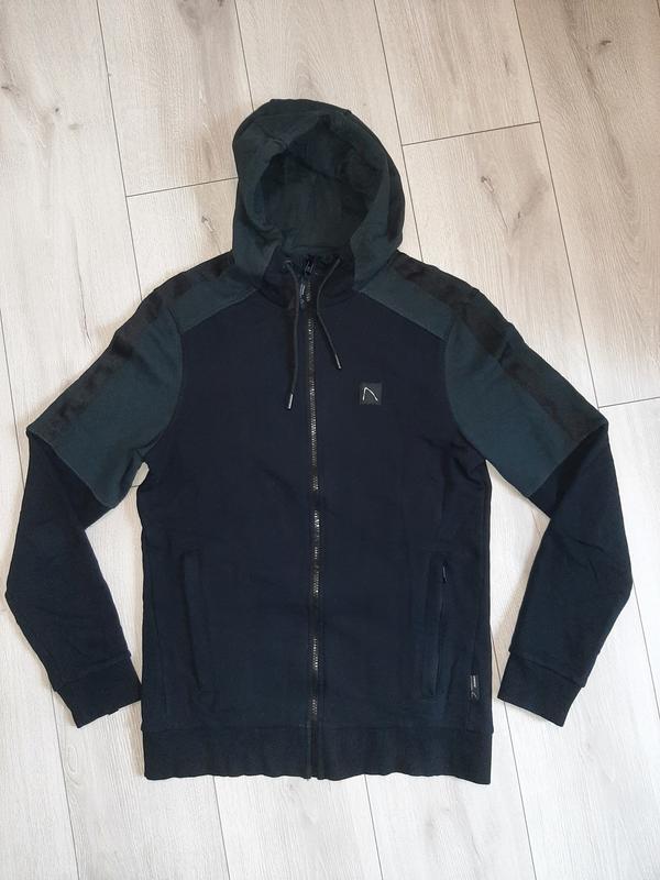 Chasin ''M'' чоловіча кофта зіпхуді чорного кольору, тканина всередені як махрова тепленька, сучасна та якісна, дві кишені на змійці, бігунки майже нові, вставки сірого кольору, 100% котон, заміри на фото.
