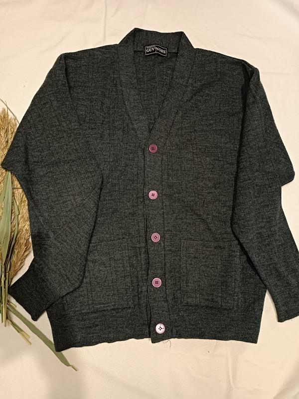 дуже гарна чоловіча кофта темно-сірого кольору, попереду має дві кишені, довжина 66, півохват грудей 62, плечі 53 ,довжина рукава 59 ,плече спущене трохи,