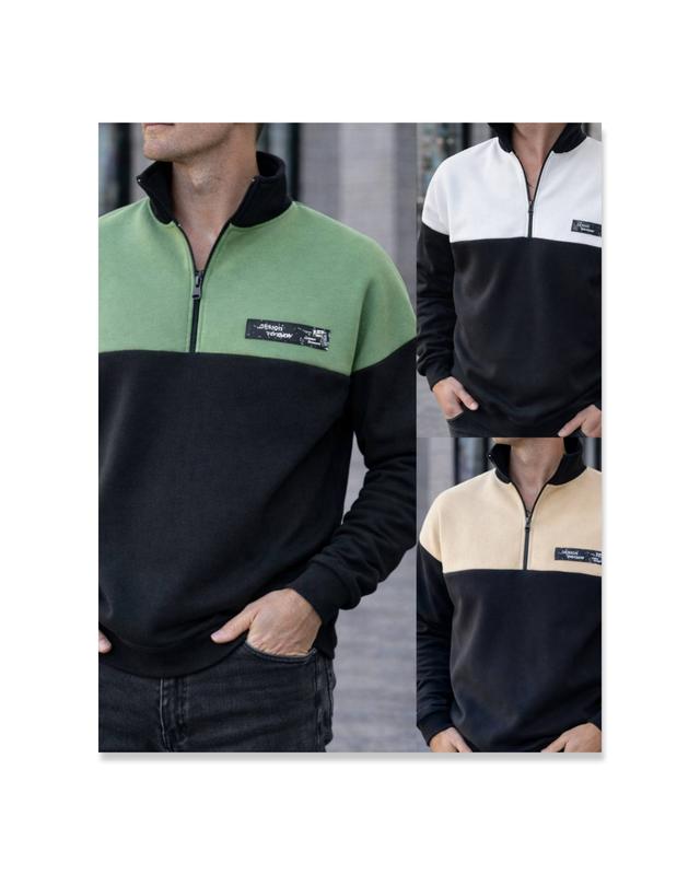 🟢🟢🟢🟢 🟢🟩🟢🟢 ✔️ Чоловіча кофта ✔️ ➡️ Мод. 713 ➖➖➖➖➖ ▫️Тканина: тринитка на флісі ▫️Колір: білий/чорний, хакі/чорний, беж/чорний ▫️Розмір: 46-48, 50-52, 54-56 ➖➖➖➖➖➖➖ Чоловіча кофта з оригінальним дизайном: на грудях змійка, яка додає образу стиль і унікальність. Модель виконана з двох кольорів, що створює цікавий контраст і підкреслює модний акцент виробу та надає різноманіття та ефектність у будь-який образ. ➖➖➖➖➖➖➖ ➡️ Заміри ▪️46-48 ОГ до 114 Довжина рукава від шиї 80 Довжина виробу 70 ▪️50-52 ОГ до 118 Довжина рукава від шиї 80 Довжина кофти 72 ▪️54-56 ОГ до 124 Довжина рукава від шиї 85 Довжина кофти 74