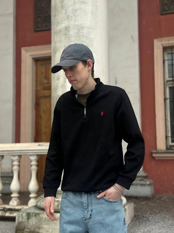 Класична модель, що втілює естетику "old money" та спортивну елегантність. Ідеальний вибір для створення багатошарових образів у стилі smart-casual. Головне про товар: Матеріал: М'який та приємний на дотик трикотаж преміальної якості, що забезпечує комфорт протягом усього дня. Дизайн: Глибокий чорний колір, який є універсальною базою для будь-якого гардероба. Особливості: * Високий комір-стійка на блискавці (чверть довжини) для регулювання терморегуляції та стилю. Еластичні манжети на рукавах та по нижньому краю для ідеальної посадки. Деталі: Вишитий фірмовий логотип гравця в поло у контрастному червоному кольорі на грудях. З чим поєднувати: Светр чудово виглядає як самостійний елемент із джинсами, так і поверх сорочки з класичними штанами.