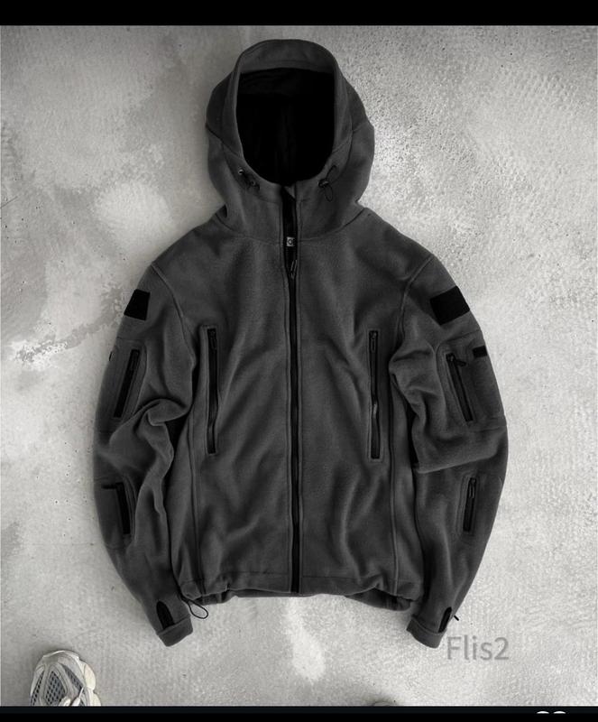 Гарна флісова зіпка на осінь/весну Має багато кишень : на рукавах, на боках, Стяжки на капюшоні та бедрах, розмір S