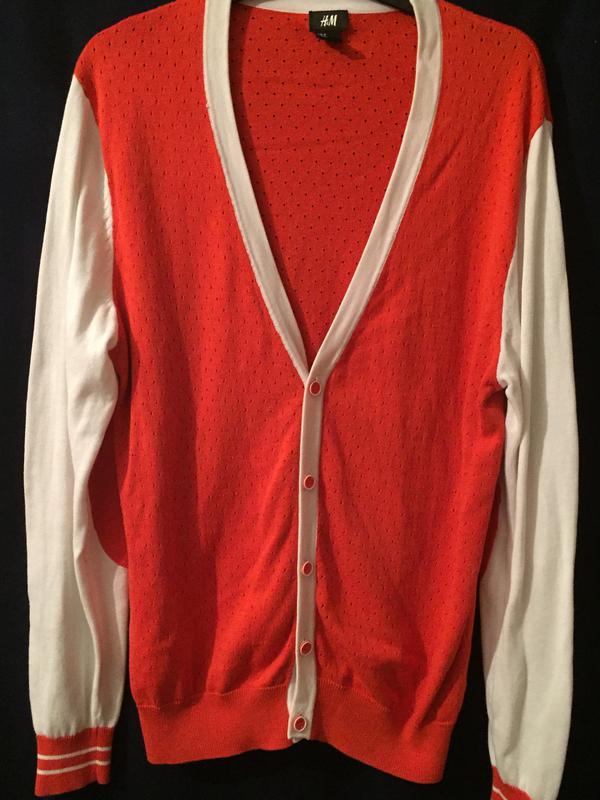 Коралова з білим стильна чоловіча кофта на гудзиках Пог-53,дл рук-72,довжина по спині-71см