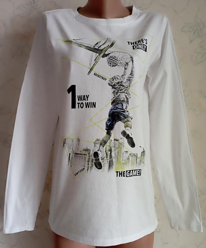 Лонгслів бавовняний , базовий , білий з малюнком , плечі 38 , ПІГ 46-48 , ПІТ 45-46 , рукав 64 , довжина виробу '68 . Тканина середньої щільності , якісна , на зріст 170/176 .