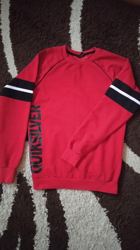 В ідеальному стані, розмір М, тканина трьохнитка, напис накат, манжети- резинка рубчик. Колір трохи темніший і не такий яскравий, фото не передає. Довжина 67см, під руками 49см, низ 37см, рукав від нижнього краю 55см. Роблю додаткові фото і заміри по запиту:)
