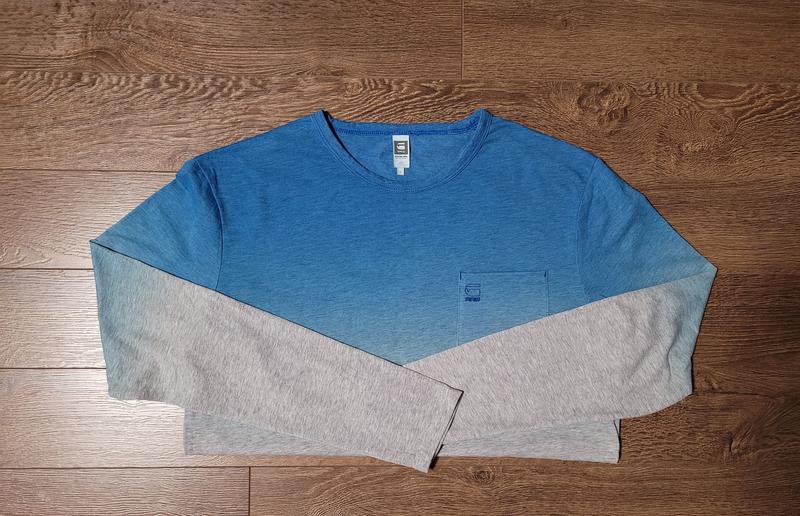 Лонгслів голландського бренда G-Star Raw, колір: поєднання сірого та синього меланжу, розмір L (аломірить на М), склад: 60% котон, 40% поліестер, виробництво Бангладеш, виміри (п/об'єм 56, плечі 48, довжина рукава за зовнішнім швом 67, по внутрішньому 52, довжина виробу 72). Стан нового.