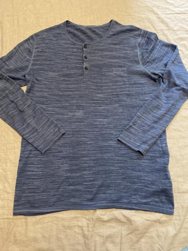 Синього кольору Лонгслів . Склад 55/45 льон бабовна. Стан ідеал. Плечи 44, грудь 50 и рукав 62. Дивіться ще мої оголошення .