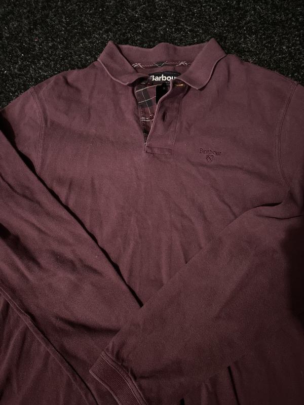 Поло лонгслив от Barbour, бордово- фиолетовый цвет, прочный материал, логотип на груди, фирменная клетка на воротнике Стан 5/5 Размер М За деталями включайте в частные сообщения