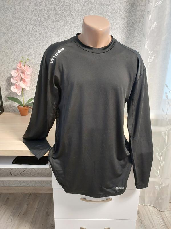 Чоловічій спортивний чорний лонгслів з поліестру та акрилу,з боків вставки з сіточки,розміром 3XL. В ідеальному стані, як новий,без слідів носки. Усі заміри на фото. Якість відмінна.