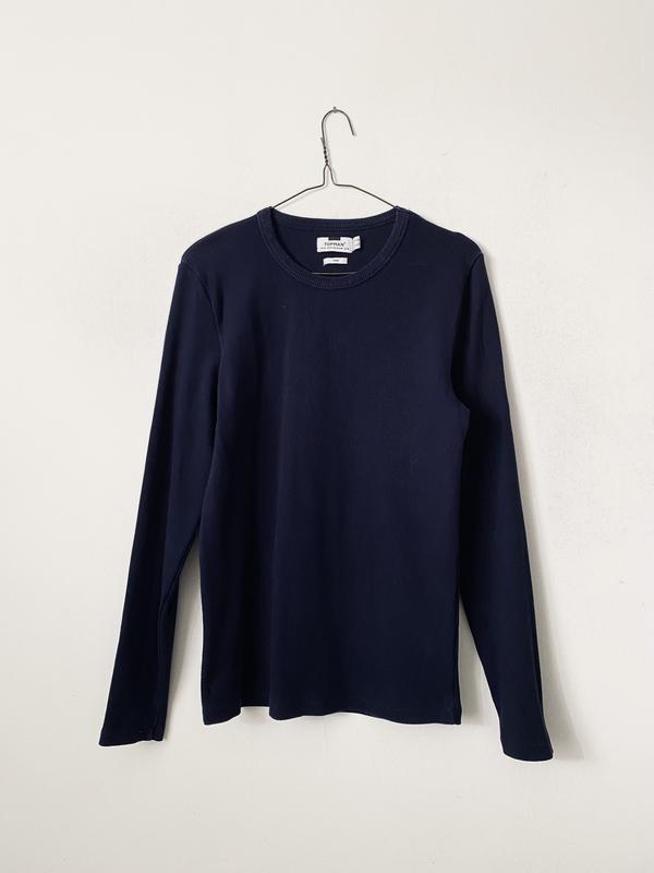 Темно-синій лонгслів у рубчик topman