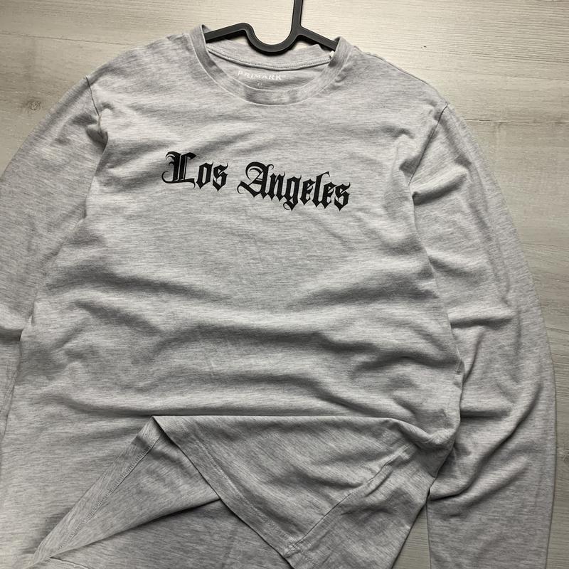 Сірий щільний лонгслів з надписом на грудях. Приталений фасон по тілу price: 400 грн size: М - параметри: • плечі 42 • п/о грудей 50 • довжина 66 • рукав 65