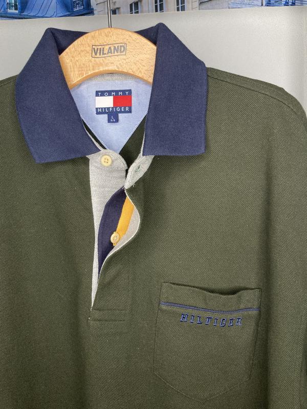 Рубашка-поло с длинным рукавом/лонгслив tommy hilfiger — оливково-зеленый с темно-синим во...