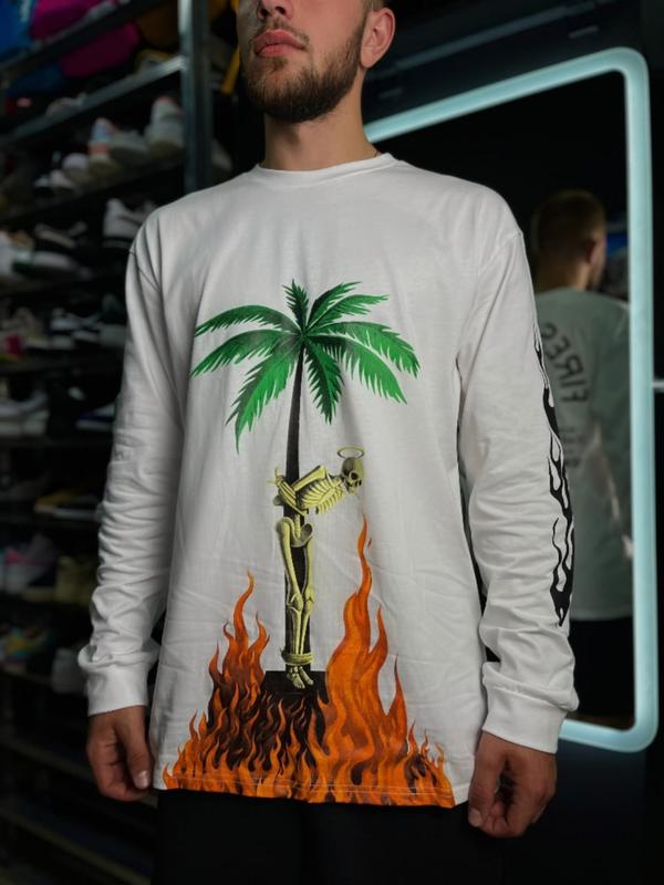 Лонгслів Palm Angels firestarter White 🔤 Арт : 1133 📎Матеріал - 100% Коттон ✅Розміри - S, М, L, XL (Євро-розмір) Фасон Oversize 📌Якісний принт, шелкографія. 🇹🇷Виробник - Китай. 📎Рукава на манжеті. 🔰Оригінальні бірки. 👍🏻Комплектація оригінальний пакет Palm Angels.