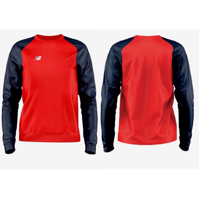 лонгслів бренду New Balance. Він має червоний колір із темно-синіми рукавами та манжетами на флісі.Логотип New Balance знаходиться на лівому боці грудей. Товар новий, із прикріпленими бирками.