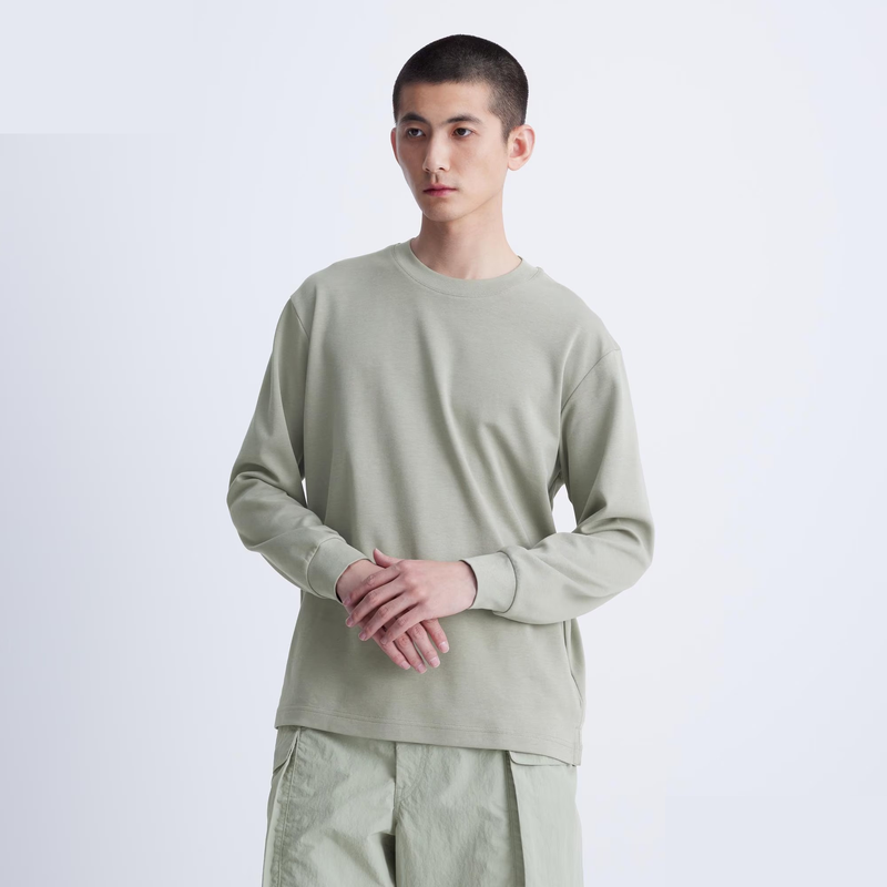 Склад: 53% бавовна, 30% поліестер (перероблене волокно), 17% еластомультіестер AIRism Cotton Oversized Crew Neck T-Shirt модель оверсайз з легкої тканини AIRism вузька кругла горловина