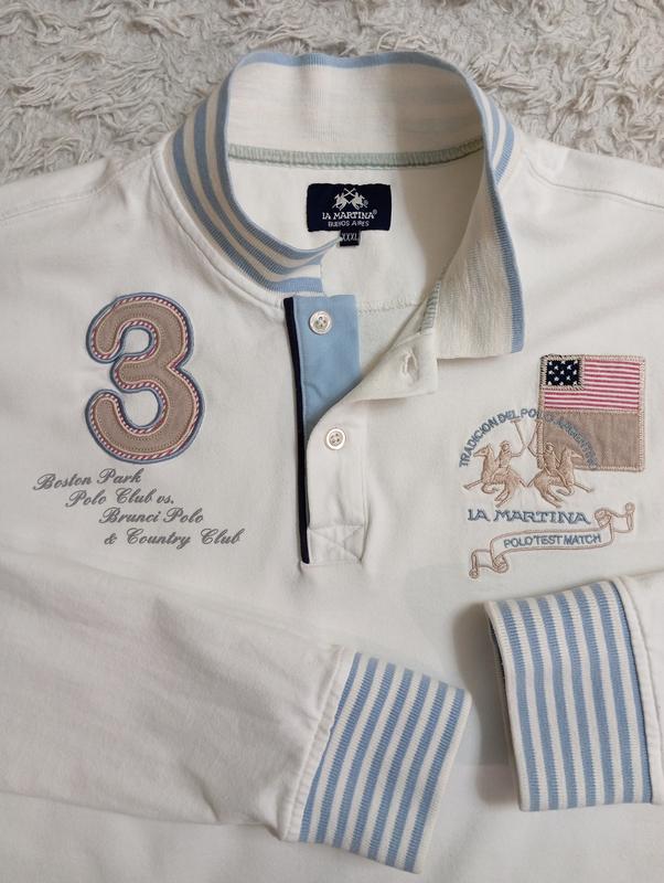 Сначала диалог, потом заказ. Отличная кофта поло от аргентинского премиум-бренда La Martina. Оригинальный. Отличное качество, отличное состояние. Очень комфортная. Цвет белый молочный. 100% бавовна. Размер указанный XXXL, но скорее XXL. Ориентируйтесь лучше на реальные замеры: полугрудь 63 полуталия 60 пи по низу 61 длина 72 плечи 55 рукав 70 полу охват рукава от подмышки 20,5, в районе локтя 17 полуманжета 12 На меня (92 кг) больше, иначе не продавал бы. Кофта подойдет на мужчину прочного телосложения весом 100-120 кг. Киев. Отпрашиваю по Новой почте после предоплаты в 300 грн. Укр-бытой отправки после полной оплаты цены. Смотрите также другие мою вещи. Много интересного. Подписывайтесь.