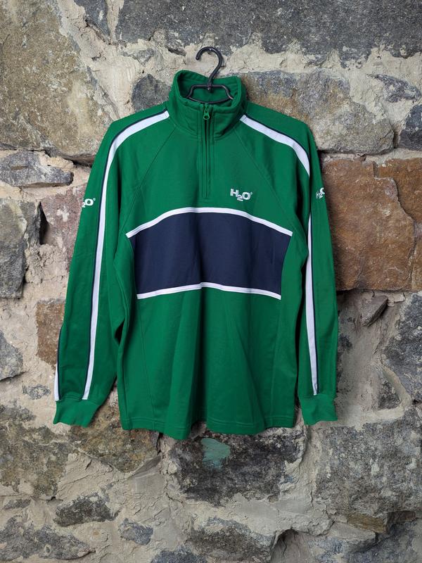 H2O був популярним в Україні в часи, коли спортивний одяг ставав частиною повсякденного гардеробу. Відкривались магазини, а сам логотип асоціювався з якістю, стилем. З роками цей датський бренд зник з нашої країни (не впевнений, що був офіційно представлений) 🔹 Дизайн з коміром-стійкою 🔹 Функціональна 3/4 блискавка 📏Розмір М 🔸Довжина 70 🔸Ширина 60 🔸 Рукав від коміру 81