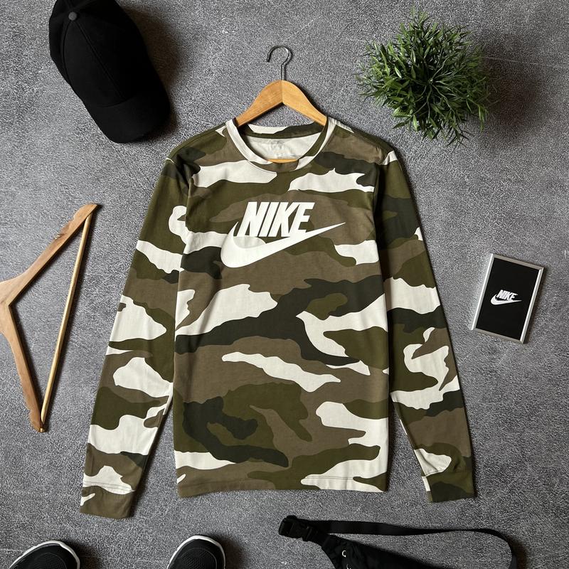 Чоловічий зелений хакі мілітарі футболка з довгим рукавом лонгслів реглан nike оригінал ро...