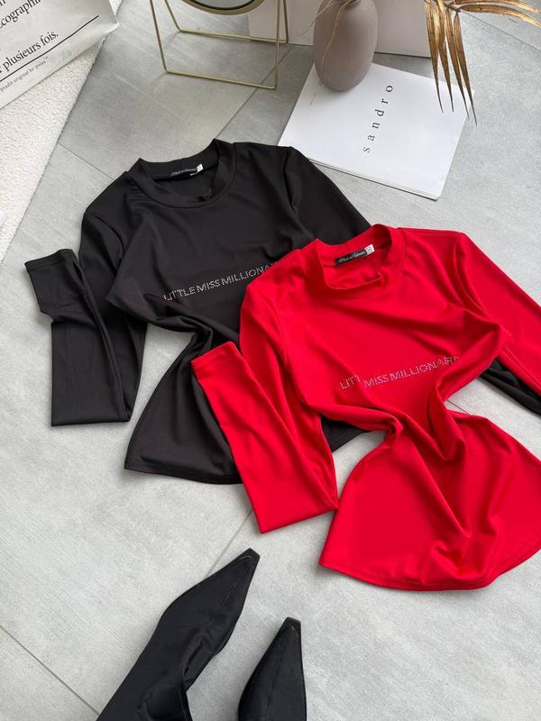 🌟НОВИНКА🌟 Стильний лонгслів з камінчиками “LITTLE MISS MILLIONAIRE” з вирізом під пальчик 🌟 Модель: 563 Тканина: мікродайвінг Кольори: рожевий , чорний , моко , червоний , білий та сірий Розміри: 42/44 та 46/48 🏷️ Ціна: 730 грн 💳Оплата: По повній оплаті на реквізити, або післяплатою з передплатою 200 грн.