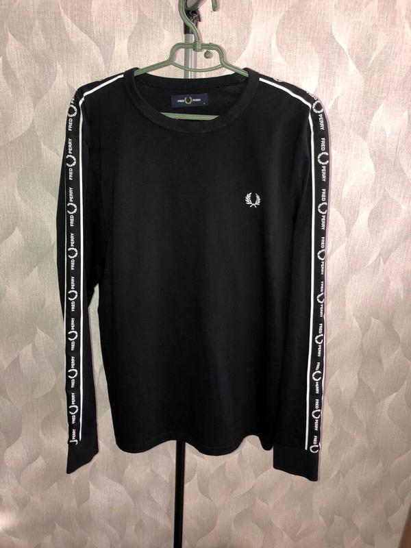 Чорна лонгслив кофта від Fred Perry. лампасы веночек, размер М плечи 44 см, под мышки 51 см, длина рукава 67 см, длина 69 см отлично
