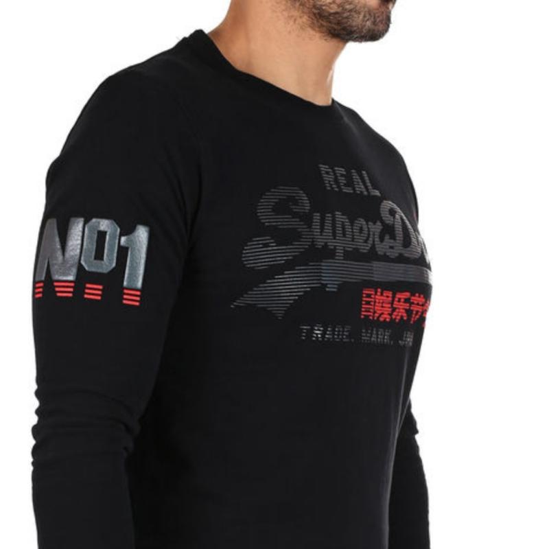 Футболка мужская с длинным рукавом от SuperDry размера S. Черная, из хлопка. Б/у, в хорошем состоянии. Размеры в см указаны на фото.
