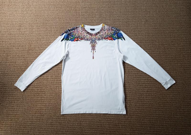 Marcelo Burlon County of Milan Wings Print Long Sleeve T-Shirt (розмір M) плечі — 48 см ширина між пахв — 55,5 см, довжина по спині — 73 см, довжина рукава — 64 см Що я можу гарантувати: 1. Це оригінал. 2. Стан ідеальний, за винятком дрібного цятки на рукаві.