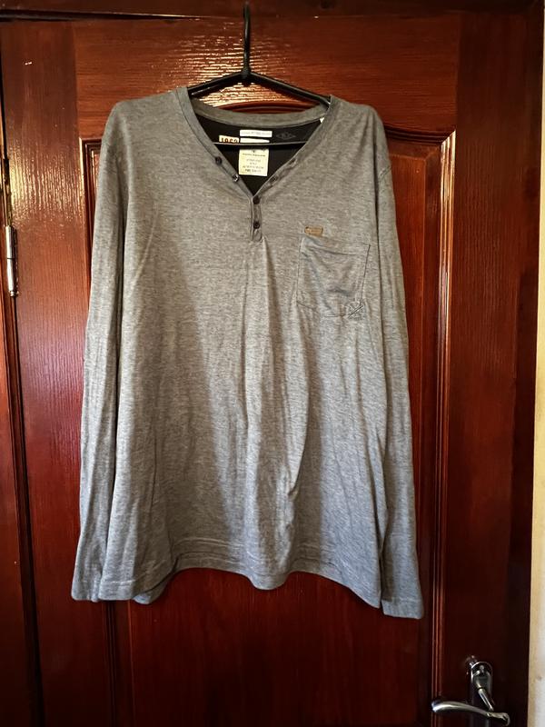Кофта, лонгслів від Tom Tailor. 100% оригінал. Сірий колір. Склад (див. фото): 65% бавовна 35% роліестер Розмір промарковано XL (див. фото) Виміри: Плечі по спинці - 49 см Під пахвами по спинці - 59 см Довжина по спинці - 75 см Довжина рукава - 67 см Пишіть, відповім на запитання, зроблю додаткові фото. Дивіться інші оголошення. Тільки оригінали та тільки мої речі.