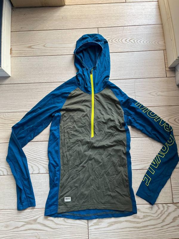 Лонгслів Mons Royale -83% шерсть МЕРІНО -air-con -вентильовані вставки -резинка в каптурі -отвори під великий палець на манжетах -розмір S -класний стан -ціна 1119 грн(на сайті 139,95$)