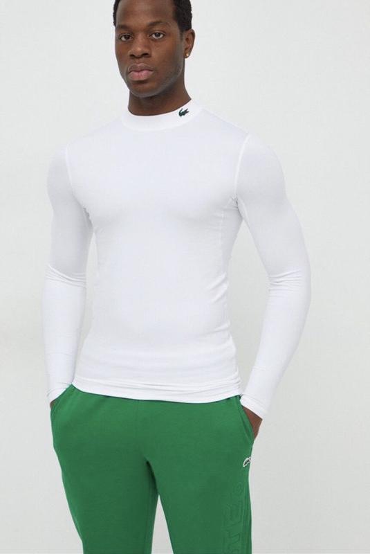 Лонгслів з колекції Lacoste виконана з гладкого трикотажу. Модель з еластичного матеріалу,що облягає фігуру. - Технологія Tech Stretch забезпечує вийнятковий комфорт використання та стійкість до змагання. - Модель з тканини,яка швидко висихає і вбирає вологу. - Крій Slim - Напівгольф - Плоскі шви захищають шкіру від потертостей та подразнень і забезпечує високий рівень комфорту під час використання. - довжина рукава 63 см - Довжина 71 см - Ширина під пахвами 45 Розмір M Зріст моделі - 186 см,розмір представленого товару на моделі M