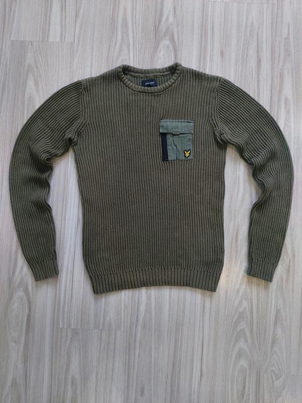 В’язаний светр Lyle & Scott оригінал у стильному кольорі хакі. Дитячий розмір XL (14–15 років), також аналогічний розміру S, добре сідає по фігурі. Виготовлений зі 100% бавовни — м’який, приємний до тіла та добре носиться. Має зручну кишеню та фірмовий логотип Lyle & Scott. Стан ідеальний, без дефектів, плям чи слідів носіння. Якісна брендова річ, яка чудово підійде для повсякденного стилю. Lyle & Scott, светр, кофта, в’язаний, хакі, дитячий, S, XL 14–15 років, оригінал, 100% бавовна, брендова одяг