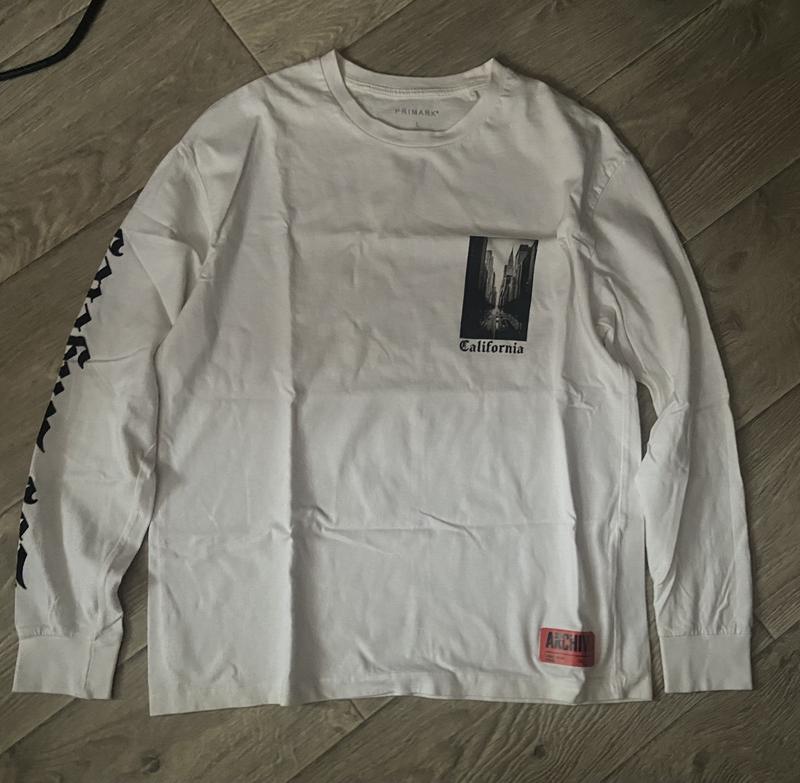 лонгслив los angeles білого кольору,стан ідеальний має багато деталей,унісекс,розмір Л за додатковими питаннями та замірами пишіть)