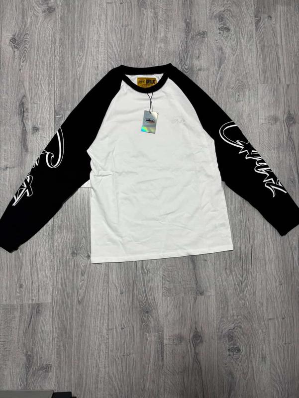 Стильний лонгслів від британського бренду Corteiz у класичному чорно-білому поєднанні. • Білий основний колір з контрастними чорними рукавами • Фірмовий логотип на грудях • Стильний принт на рукавах • Розмір M • Новий з бірками • Якісний матеріал