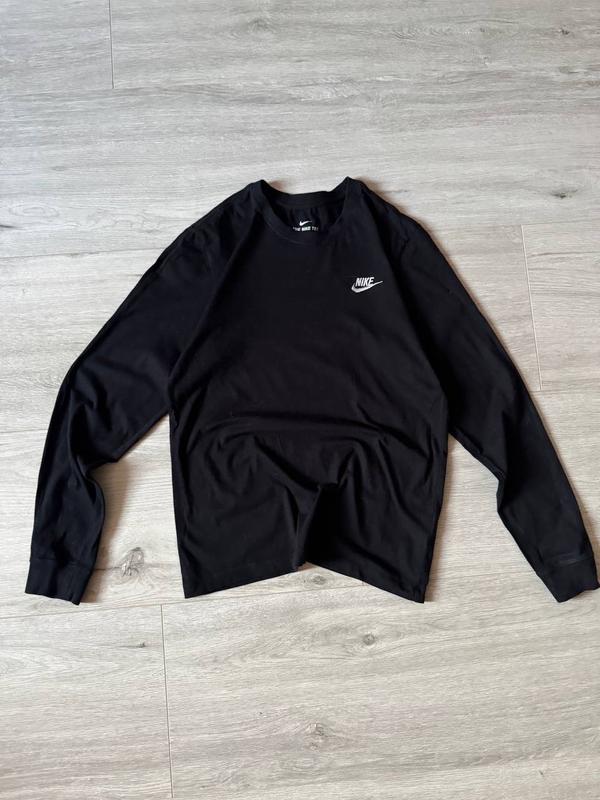 Оригінальний чорний лонгслів Nike в ідеальному стані. Особливості: • Розмір: S-M • Колір: чорний • Класичний логотип Nike на грудях • М'яка тканина для комфортного носіння • Круглий виріз горловини • Довгі рукави з манжетами Ідеально підходить для повсякденного носіння, спорту або відпочинку. Якісна оригінальна продукція Nike без дефектів і зносу.