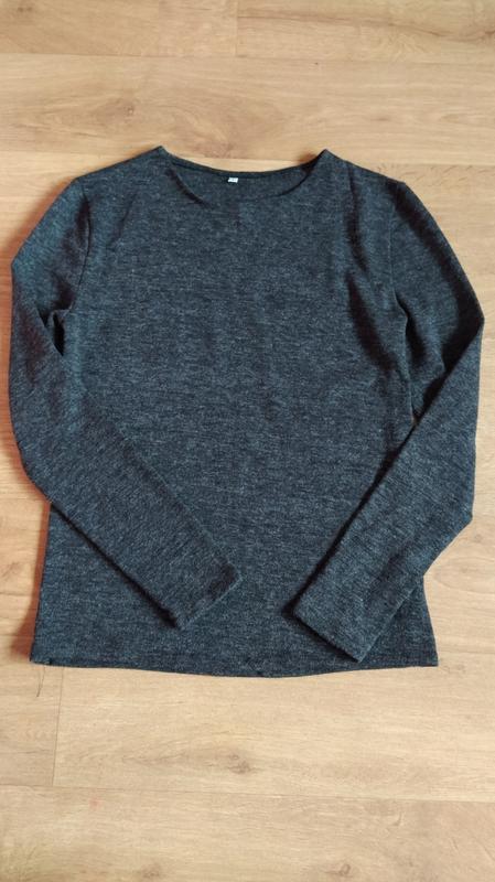 Розмір S. Заміри: плечі - 40, довжина рукава 59, довжина виробу-57 від плеча до низу. склад - вовна, тонкий машинна у язка.Темносірий колір.