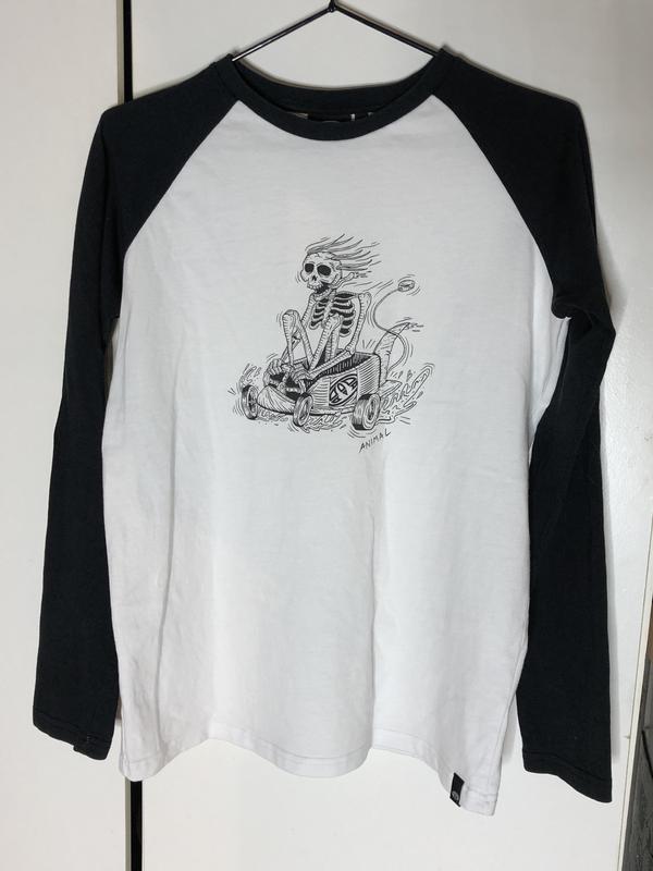 Футболка з довгим рукавом Animal на підлітка 13-14 років. Склад: 100% бавовна. Стан ідеальний. Рукав реглан. Довжина виробу: 60см, довжина рукава: 71 см . Стильна, зручна річ.