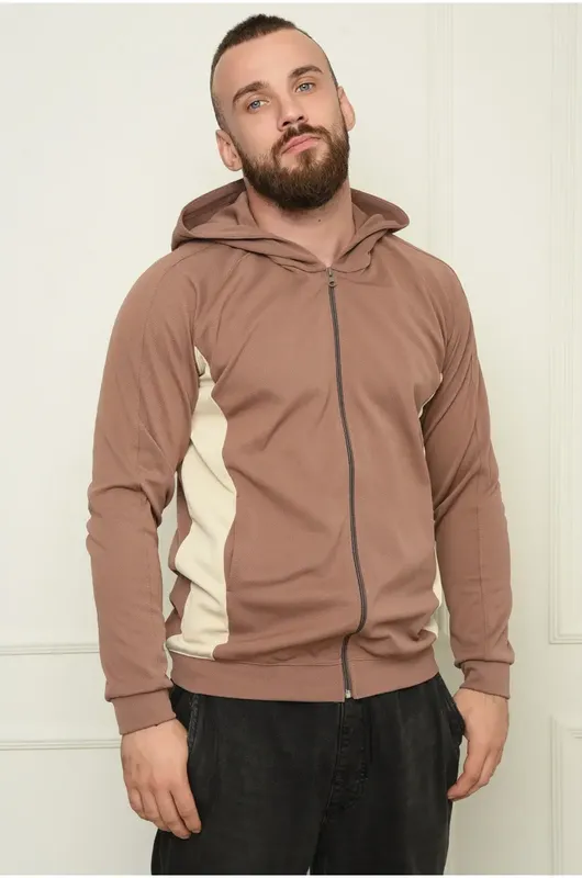 Спортивна кофта чоловіча з капюшоном шоколадного кольору із молочними вставками