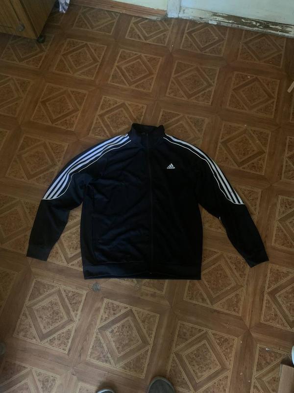 Адидас Олемпийка Размер ХЛ но пойдет и на Л Состояние 9/10 ( маленькое пятнышко на полоске, его можно замазать белым фломастером) А так все сама Олемпийка очень удобная