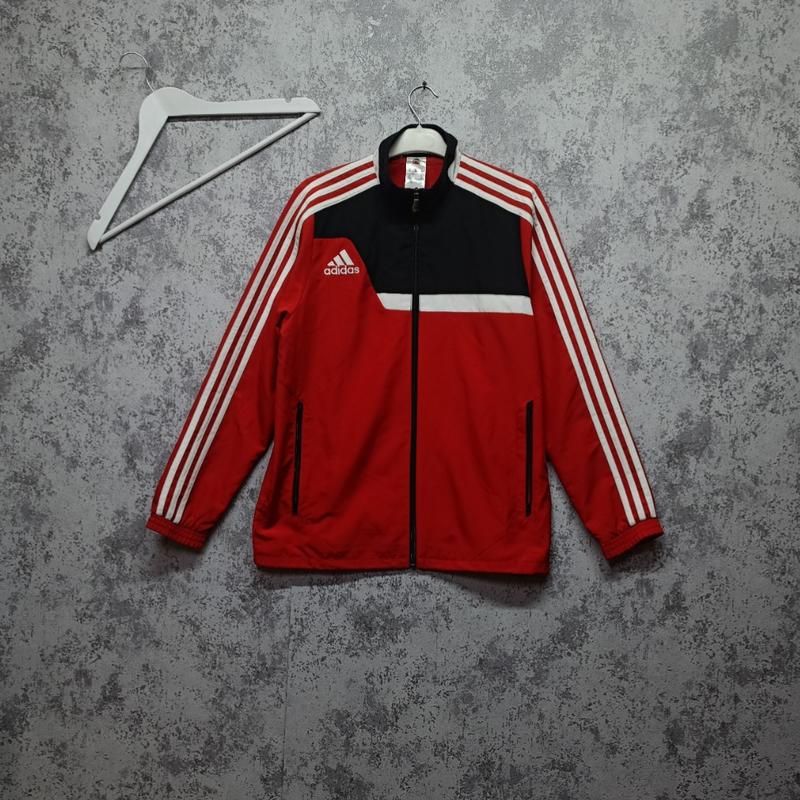 олимпийка от бренда Adidas Tiro 13 Trg Jacket в отличном состоянии, идеальную для спорта и повседневной носки. Дизайн: Куртка выполнена в классическом сочетании красного, черного и белого цветов. Имеет полную застежку-молнию, воротник-стойку и фирменные три белые полоски Adidas на рукавах. Материал: Изготовлена из 100% полиэстера, что обеспечивает прочность и быстрое высыхание. Модель имеет простой фасон, не стесняющий движений и два боковых кармана для удобства. Эта качественная и практичная куртка станет отличным дополнением к вашему спортивному гардеробу.
