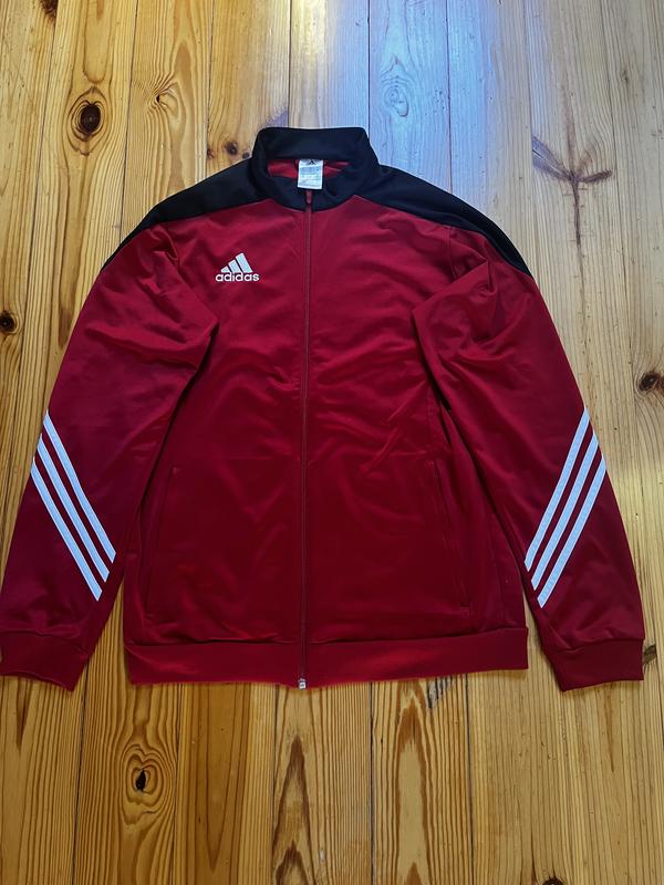 Червона олімпійка Adidas Оригінальна спортивна олімпійка Adidas червоного кольору. Зручна, стильна, добре сидить. Підійде для спорту та повсякденного носіння. Стан ідеальний, без плям та слілідів носки . Більше питань в особисті повідомленя