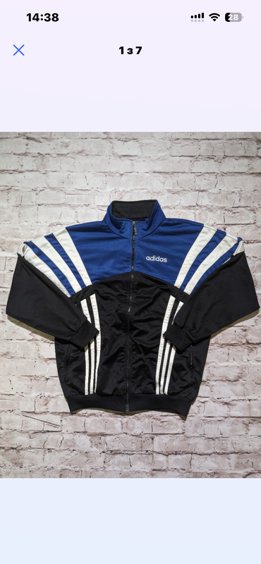 Марка: Adidas • Розмір: L, D6 F180 • Колір: синій/чорний/білий • Класичні білі смуги на рукавах • Повна застібка-блискавка • Вінтажний стиль з ретро-елементами • Зручний крій для активного відпочинку