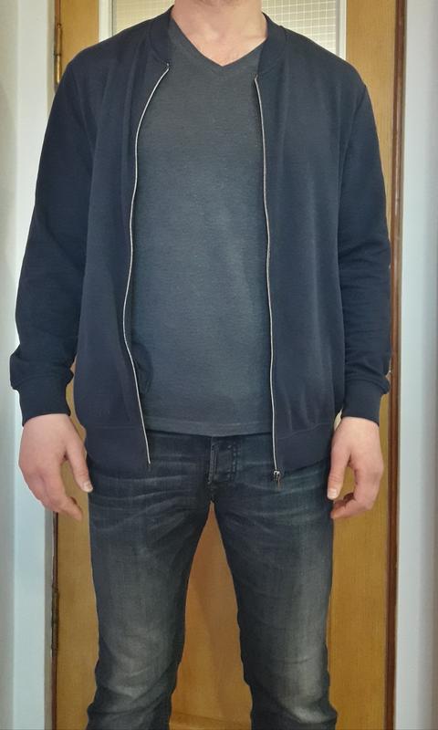 Темно-синя кофта на замку з кишенями, стильно , кежуал.Нова.Розмір М. Плечі 49см. Довжина 68см. Обхват грудей 56см. Довж.рукава 63див. Також є ексклюзивні речі на вибір +- тих же розмірів: куртки, джинси, сорочки, джемпери в моїх оголошеннях.