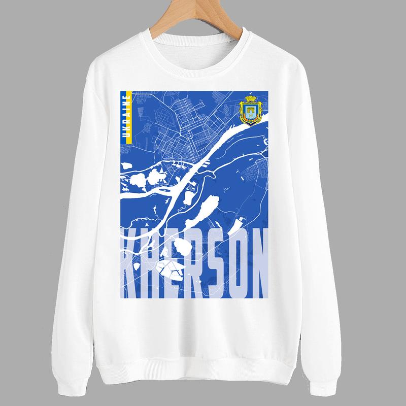 Світшот білий з патріотичним принтом "міста україни. херсон. kherson" push it