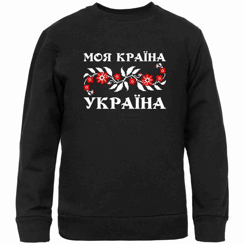 Світшот чорний із патріотичним принтом "моя країна україна" push it