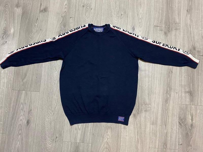 Оригинал!!!Кофта Лонгслив с лампасами на рукавах Superdry Super Dry р. М Очень стильный и приятный на ощюпь, цвет синий. Размер: Пог 57 см , Рукав 73 см , Длина 68 см .