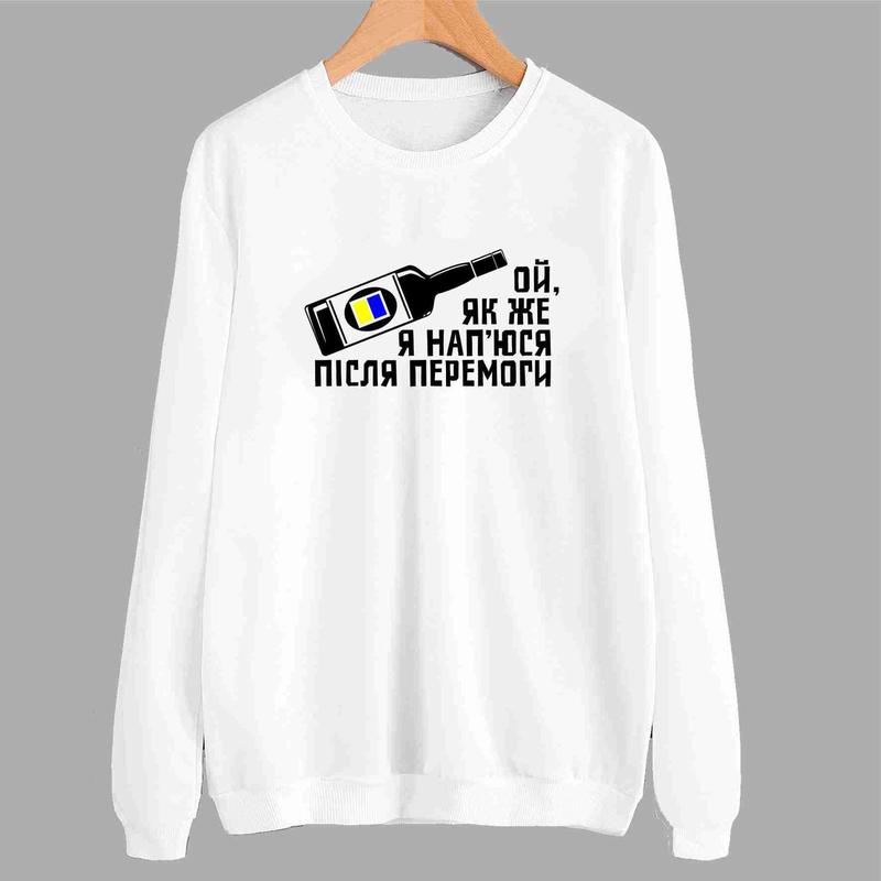 Світшот білий з патріотичним принтом "Ой, як я нап'юся після перемоги. Пляшка алкоголю" Push IT !!! У НАЯВНОСТІ ВСІ РОЗМІРИ!!! Стильний брендовий світшот із крутим принтом. Виріб із бавовни для приємного повсякденного носіння. Друк наноситься цифровим способом, тому принт витримає велику кількість прань і добре пропускає повітря до тіла. Надруковано в друкарні "Кавун". Бавовняні світшоти з принтами зручно носити як влітку, так і взимку. Вироби підходять як для чоловіків, так і для жінок. Принт можна нанести на різну сувенірну продукцію (запитуйте у менеджера).