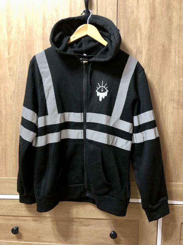 Кофта в ідеальному стані, без нюансів. Утеплена начьосом. Розшита світло відбивними стрічками. Мягенька. Рукав від плеча 62, довжина 68/69, ширина по грудях 54.