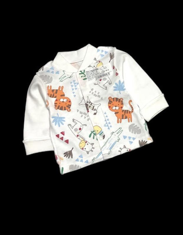 Трикотажна кофта для новонароджених підійде на всі сезони року, для дому, прогулянок, для сна. Зимою його можна носити під теплий ромпер, як натільний одяг. Кофта виготовлена із натуральної тканини - інтерлок. Інтерлок це м’яка, дихаюча, безпечна і високоякісна бавовна.Шви зовнішні, ручки відкриті. На рукавах та горловині трикотажна манжета. Застібка у вигляді кнопок по всій довжині дозволяє легко і швидко одягнути і роздягнути малюка. Зручний та вільний пошив не сковує рух дитини. Бавовняна тканина преміум якості прекрасно тримає форму і зберігає колір навіть після багаточисельного прання. Заміри: 56 см: довжина 24 см /рукав 18 см/у грудях 38 см 62 см: довжина 26 см /рукав 20 см/у грудях 40 см