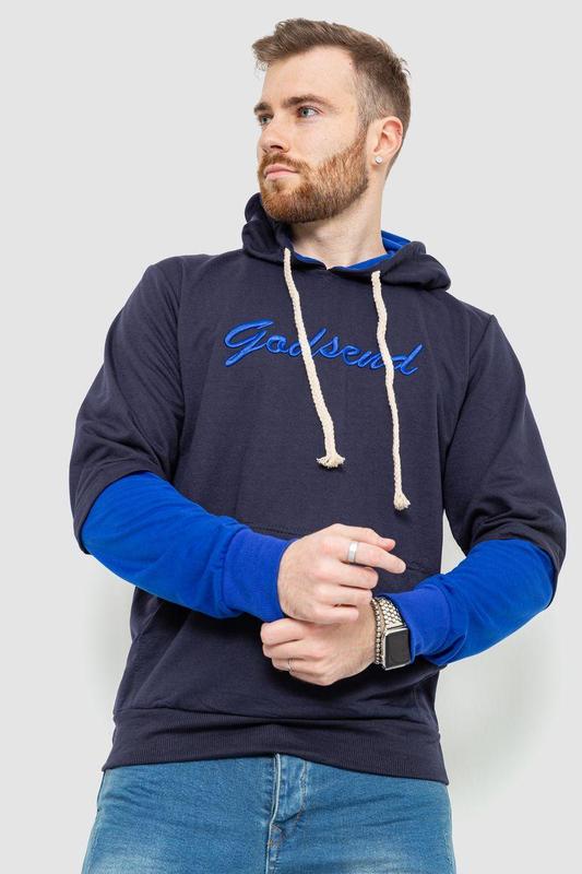 Худі чоловічий з принтом, колір темно-синій, 214rq019